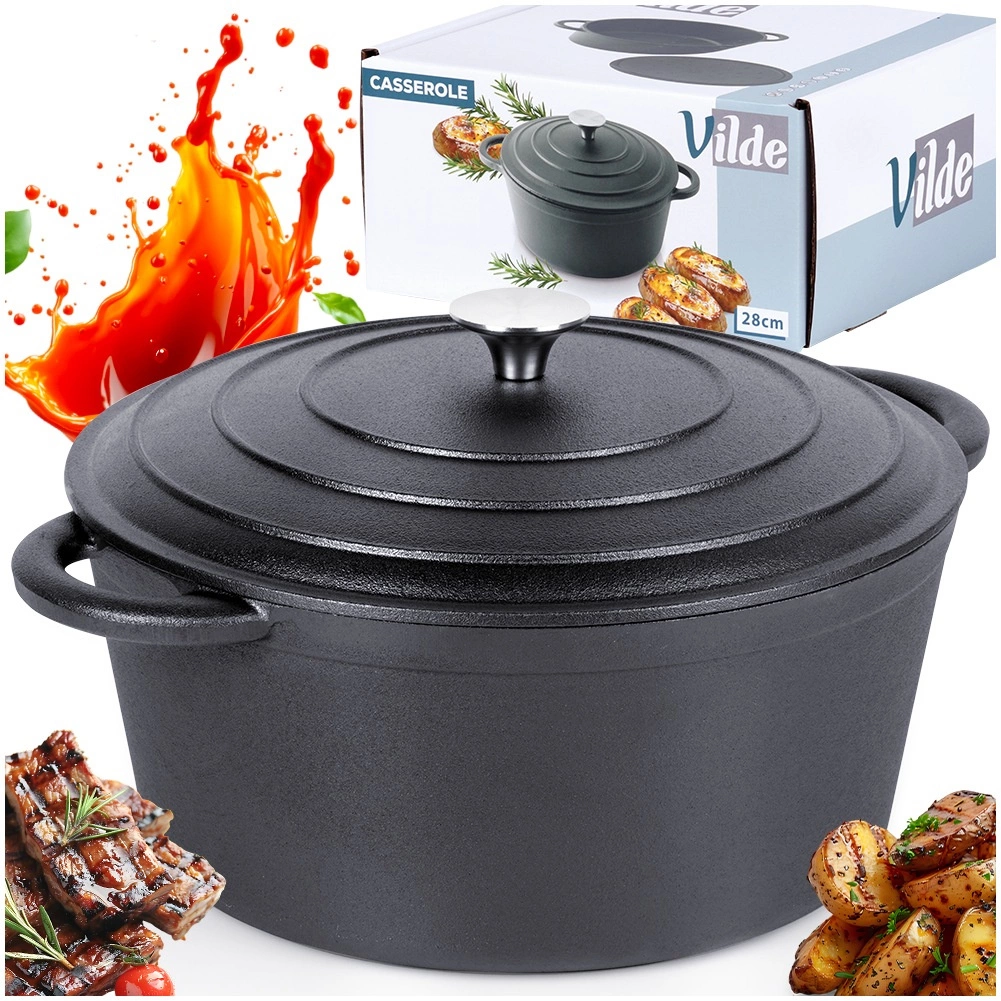 Consejo de mantenimiento: después de cada uso, lava la olla, sécala bien y úntala ligeramente con aceite para evitar la aparición de óxido. El menaje no tiene recubrimiento antiadherente. Producto original de la marca VILDE de la línea CAST LINE, fabricado conforme a las normas europeas.