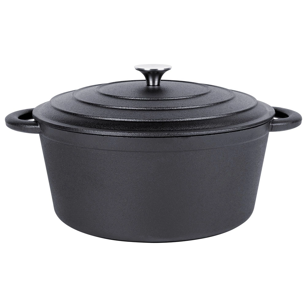 La olla de hierro fundido CAST LINE de 28 cm de diámetro está fabricada en hierro fundido macizo con acabado negro. El hierro se calienta de manera uniforme, conserva muy bien el calor y garantiza platos jugosos y aromáticos. Gracias a la tapa que sella con pomo de acero inoxidable y a las amplias asas integradas, la manipulación es fácil y segura.