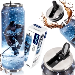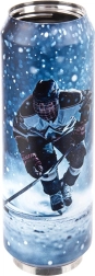 Elegante vaso térmico con forma de lata y capacidad de 700 ml que mantiene tus bebidas a la temperatura ideal durante mucho tiempo. Gracias a su doble pared con aislamiento al vacío es apto para bebidas calientes y frías. Cuenta con tapa hermética con boquilla abatible y pajita, está fabricado en acero inoxidable y luce un motivo de hockey, ideal para viajes, trabajo y deporte.