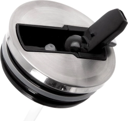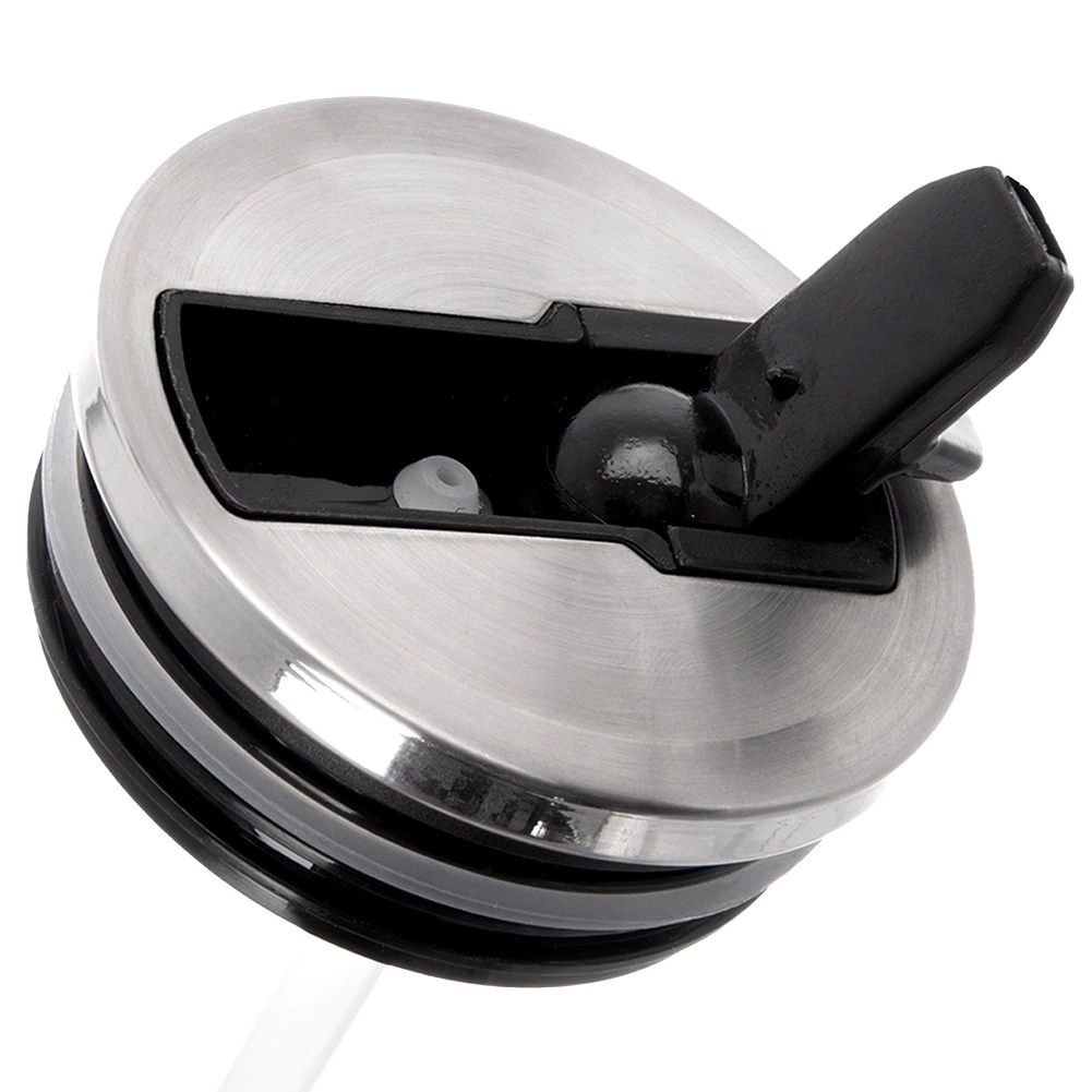La tapa con boquilla abatible y pajita interna permite beber incluso al caminar o conducir. Incluye una pajita de repuesto.