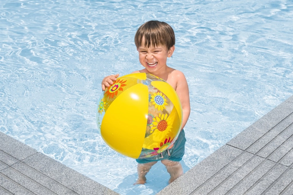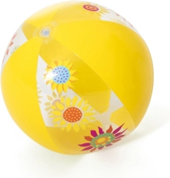 Colores vivos y estampados florales hacen de la pelota un llamativo accesorio para cualquier diversión veraniega: a los niños les encanta al instante.