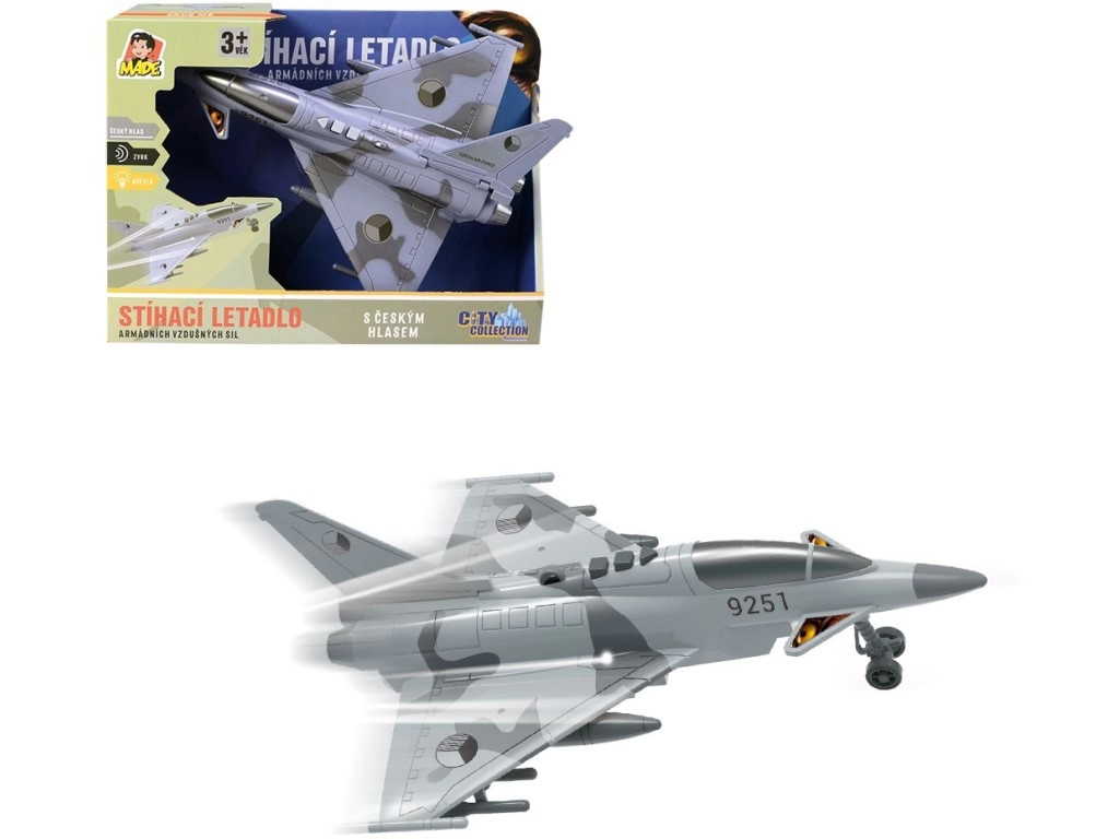 Disfruta misiones aéreas llenas de acción con este avión de combate detallado, decorado con las insignias de la República Checa. El modelo ofrece diálogos auténticos en checo entre la torre de control y el piloto, efectos de luz y el sonido de un caza en vuelo, que potencian la atmósfera de juego.