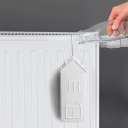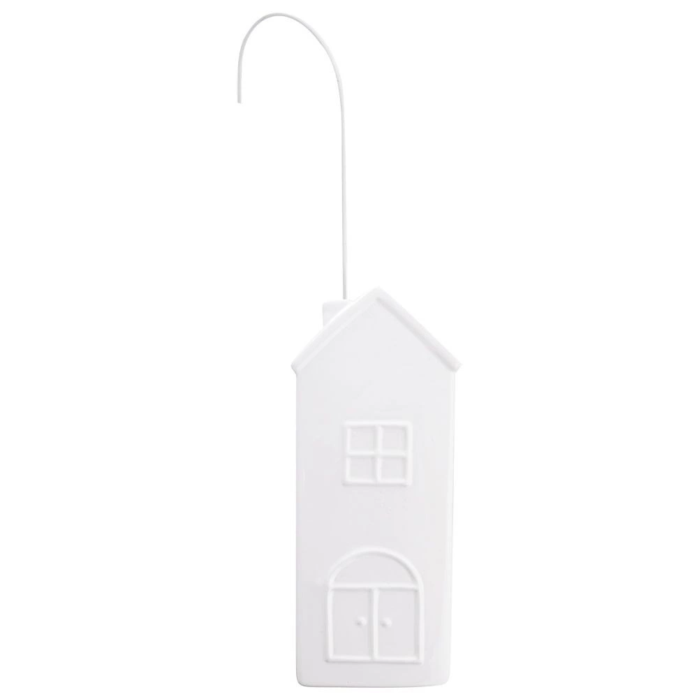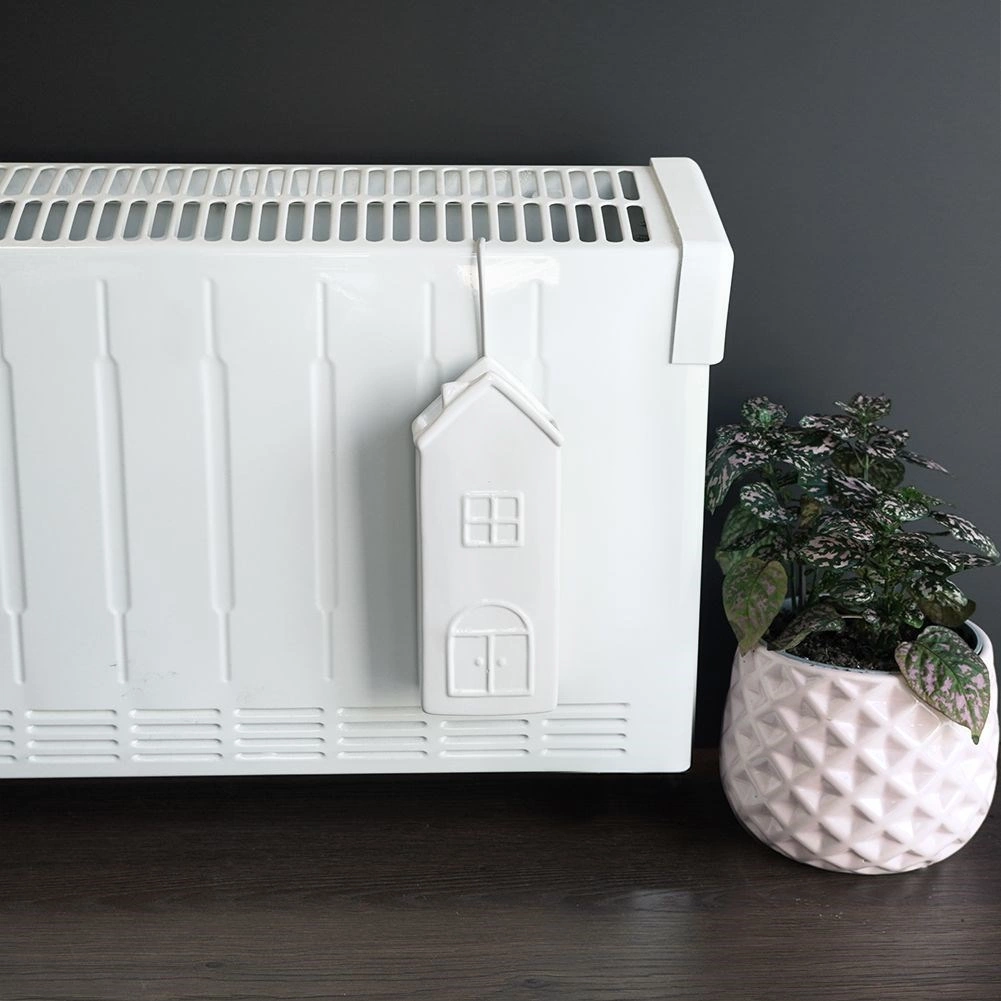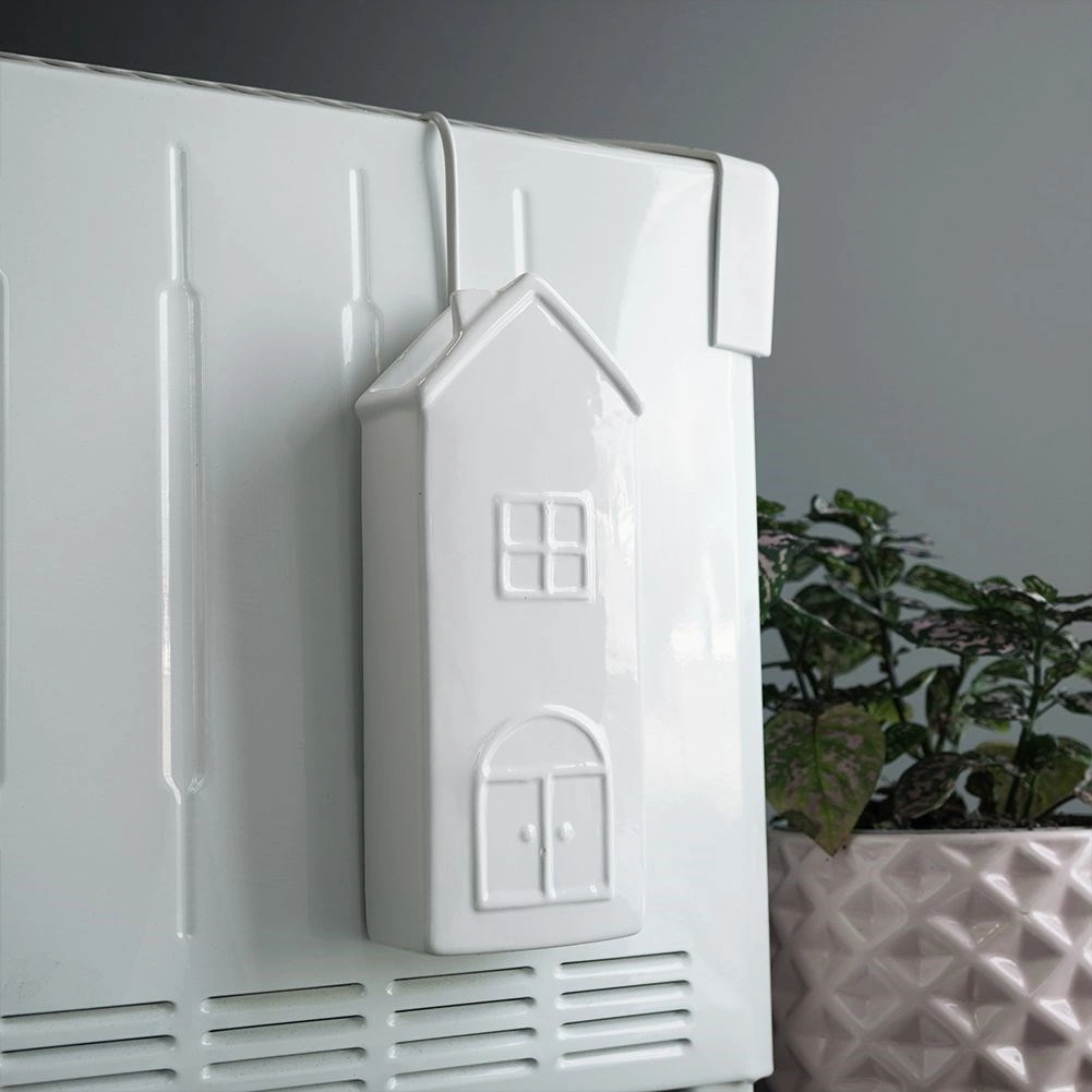 Elegante humidificador de aire de cerámica para radiador en forma de casita con capacidad de 300 ml, ayuda a mantener la humedad óptima durante la temporada de calefacción. Gracias a su sencillo colgado con gancho metálico y a su fácil uso, solo hay que añadir agua. El esmalte blanco y el diseño decorativo combinan con cualquier interior. La cerámica de alta calidad garantiza una larga vida útil y un funcionamiento seguro.