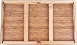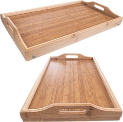 El bambú es naturalmente resistente a la humedad y a las deformaciones, se seca rápido y no absorbe olores. La bandeja puede usarse por separado; cuenta con asas cómodas para un transporte seguro. Mantenimiento sencillo y un aspecto natural atemporal que encaja en cualquier interior.