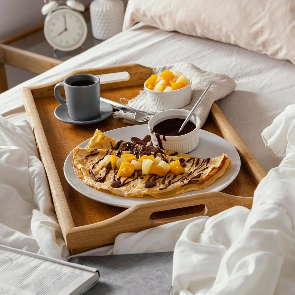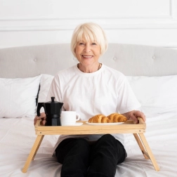 La mesa de desayuno plegable de bambú de alta calidad facilita las tareas cotidianas en casa. La usarás para servir el desayuno en la cama, descansar viendo una película y como mesa para trabajar con el portátil o la tablet. Gracias a sus dimensiones compactas y a su diseño plegable, se guarda fácilmente y está lista para usar en un instante.