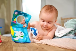 Este librito ligero y flotante para el agua encantará a los niños con colores vivos e ilustraciones sencillas que fomentan la percepción de las formas y el desarrollo del vocabulario. El material suave es agradable al tacto, fácil de limpiar y seguro para los primeros dientes.