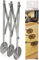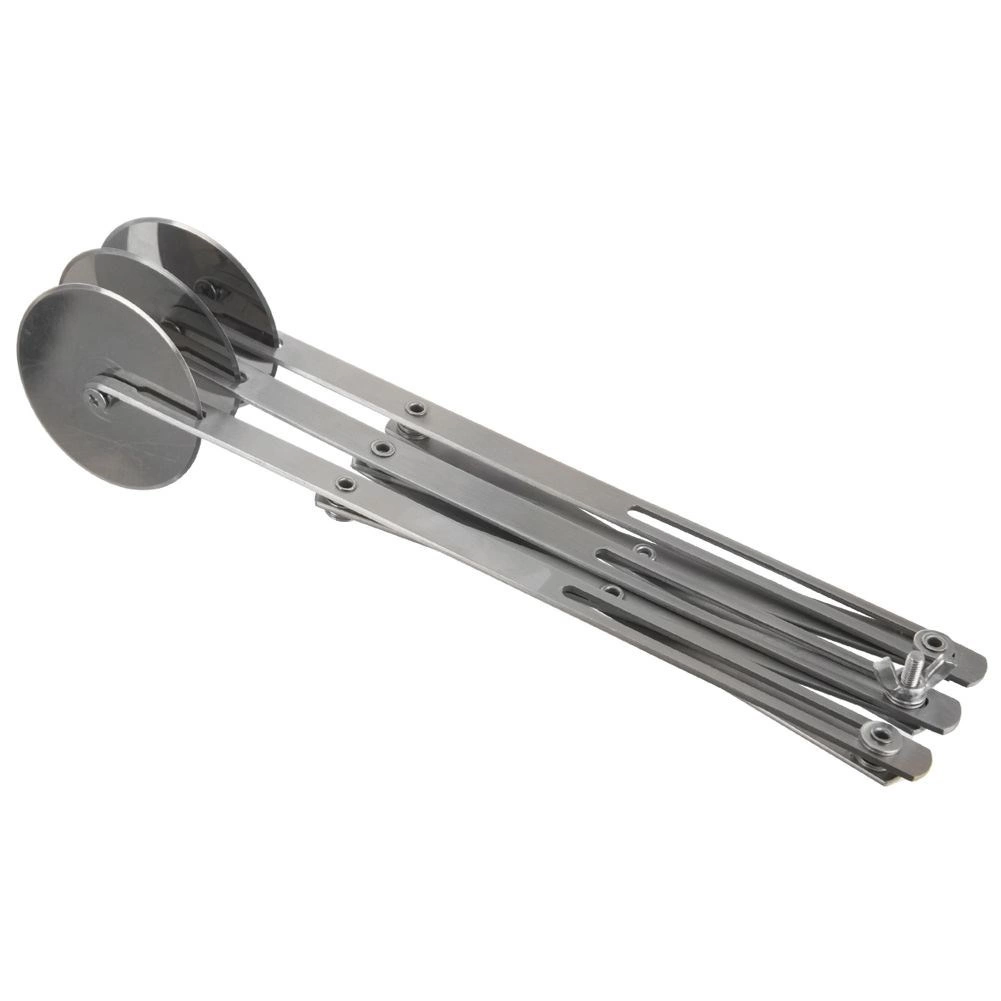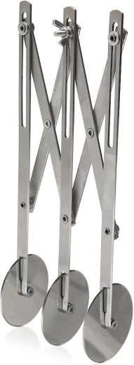 Práctico cortador triple para masa y pasta de acero inoxidable de alta calidad para un corte rápido y preciso. Gracias al espaciado ajustable de los discos de 1,3 a 25 cm, preparará fácilmente tiras uniformes para galletas, tartas y masa para pasta casera. Los discos lisos y afilados no se pegan a la masa y el mantenimiento sencillo en el lavavajillas ahorra tiempo.