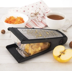 Gracias al resistente acero inoxidable y al plástico de calidad, el rallador es robusto y a la vez ligero de manejar. El recipiente recoge de forma segura los ingredientes rallados y facilita verterlos en un bol o directamente en el plato. El rallador es fácil de lavar en el lavavajillas, ahorrando tiempo y esfuerzo.