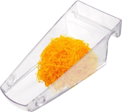 El recipiente transparente y desmontable recoge todo lo que rallas y permite verter fácilmente sin ensuciar la encimera.