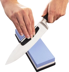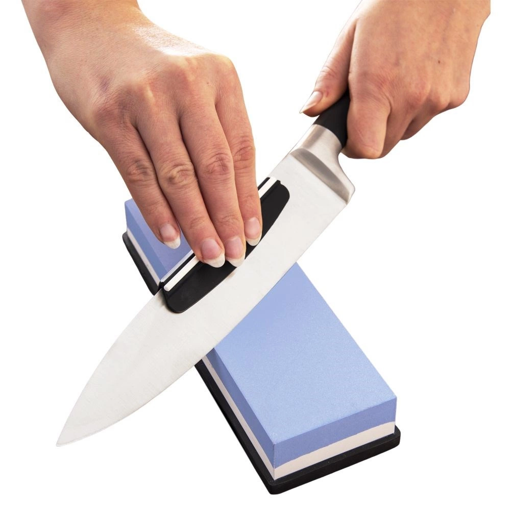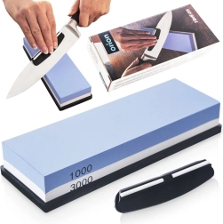 El lado azul 1000 restaura rápidamente el filo; el blanco 3000 lo pule hasta dejarlo suave. Combinación ideal para resultados afilados y duraderos.