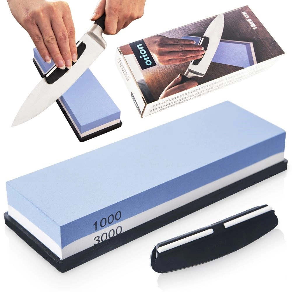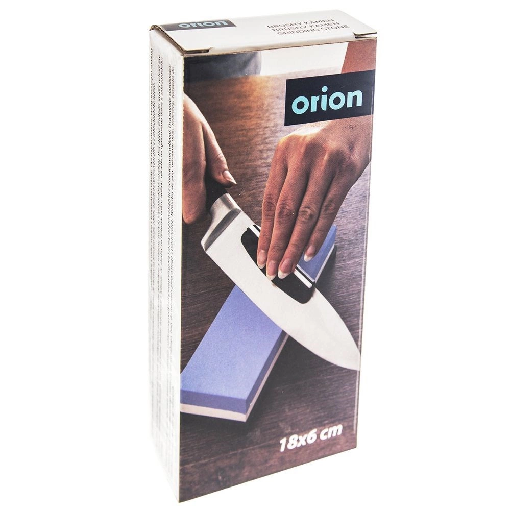 La piedra de afilar ORION combina corindón de calidad en dos granulometrías 1000/3000 y un afilado seguro gracias a la base antideslizante. El lado azul (1000) restaura rápidamente el filo, y el lado blanco (3000) lo pule suavemente para un corte perfectamente liso. La guía angular mantiene la inclinación correcta de la hoja entre 15–20°, garantizando resultados consistentes incluso para principiantes.