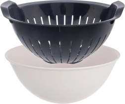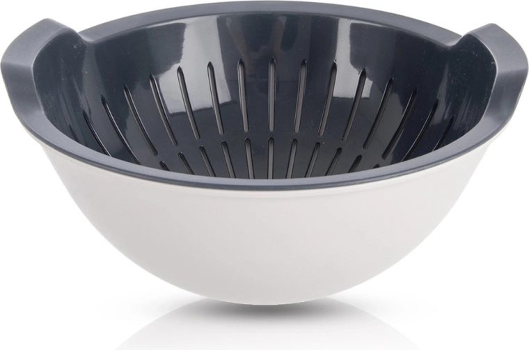Práctico set 2 en 1 colador + bol que facilita el lavado diario, enjuague y escurrido de frutas, verduras o pasta. El colador extraíble deja que el agua fluya libremente hacia el bol, todo sin ensuciar. Fabricado en plástico de alta calidad sin BPA, resistente y ligero. Apto para lavavajillas y el bol también para microondas.