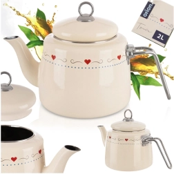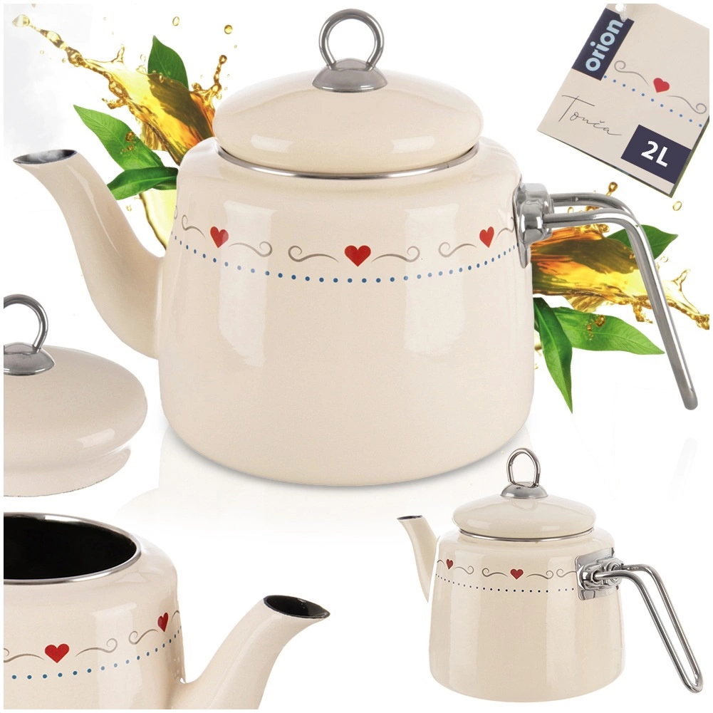 La estilosa jarra Tonca es ideal para hervir agua rápidamente a diario para café, té o infusiones y, al mismo tiempo, sirve como tetera decorativa para servir directamente en la mesa. El esmalte es seguro para la salud y apto incluso para alérgicos, y los elementos de acero inoxidable aportan resistencia y larga vida útil.