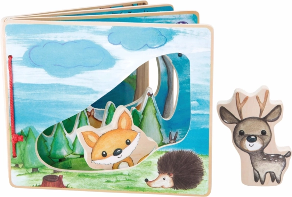 Adéntrate en el bosque profundo con este libro de madera interactivo que estimula la imaginación de los niños. Gracias a las figuras de zorro y ciervo, que ayudan a descubrir la flora y la fauna, cada juego se convierte en una experiencia única.