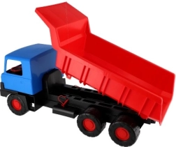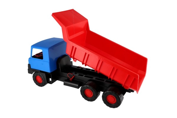 Este robusto camión de plástico con cabina azul y caja basculante roja encantará a los pequeños constructores tanto en casa como en el arenero. Gracias a su longitud de 75 cm, a las ruedas resistentes y al volquete funcional, puede transportar arena, piedritas y juguetes. Su construcción ligera y segura fomenta el juego creativo y al aire libre.