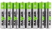 Pilas alcalinas AAA 1,5 V de RAVER en un práctico paquete de 8 unidades en film. Fuente de energía fiable para juguetes, mandos a distancia y otros dispositivos cotidianos.