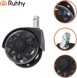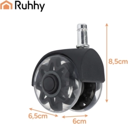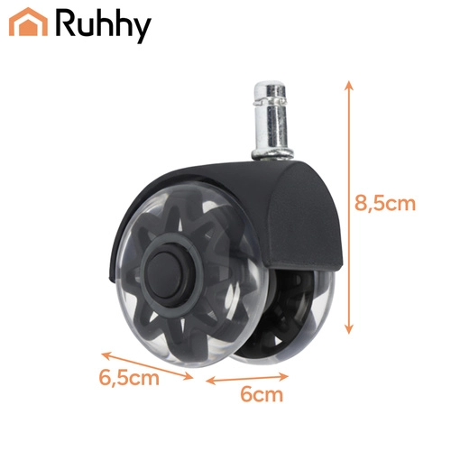 Las ruedas RUHHY aportan comodidad y seguridad para tu suelo y tu silla. Gracias a la superficie de PU blando, ruedan suavemente sobre tarimas, parquet, baldosa y moqueta sin dejar arañazos. El rodamiento de acero y la estructura reforzada garantizan una larga vida útil y fiabilidad en el uso diario.