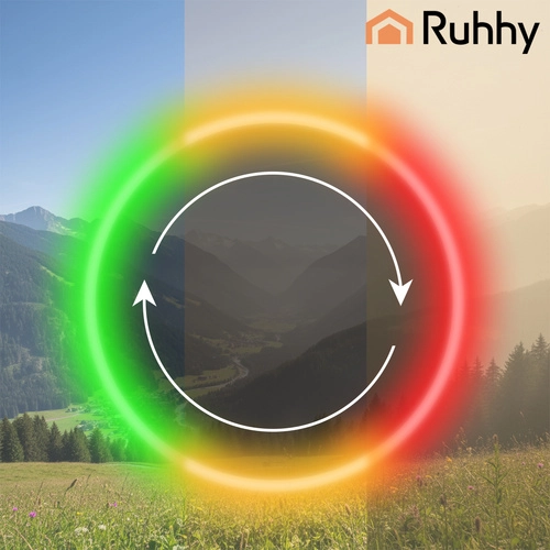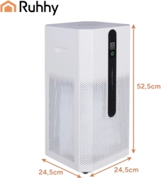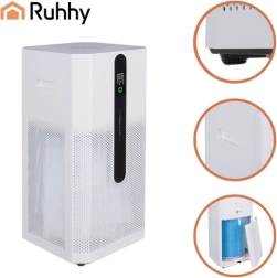 El purificador de aire inteligente RUHHY Ioniqs combina filtración trifásica (prefiltro + HEPA H12 + carbón activo) e ionización para eliminar polvo, polen, smog PM2.5, ácaros, bacterias, virus y malos olores. Gracias a su CADR de 370 m³/h purifica rápidamente el aire del salón, dormitorio u oficina, mientras que el indicador de color de la calidad del aire te informa constantemente del estado del ambiente.