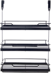 Tres cestas con bordes elevados alojan especieros, botes y pequeños objetos: todo organizado y al alcance.