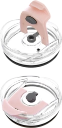 La tapa transparente con junta tiene una abertura con cierre para beber y una abertura independiente para la pajita metálica con tapón de silicona.