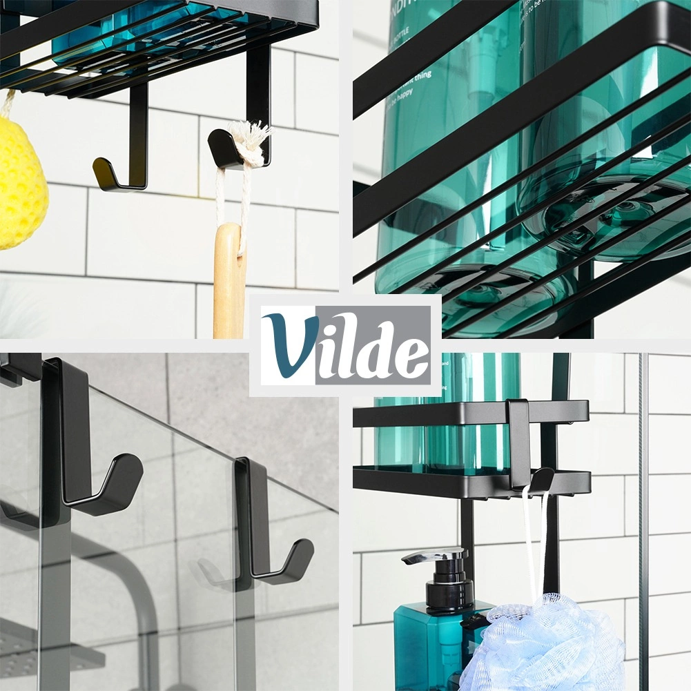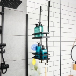 El montaje es muy sencillo: sin herramientas y sin taladrar. Gracias a los ganchos largos, simplemente lo colocas sobre el panel de cristal o el marco de la mampara de ducha. Las lamas abiertas en las baldas aseguran un rápido drenaje del agua y una higiene óptima sin acumulaciones innecesarias.