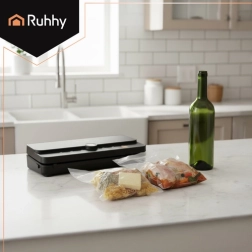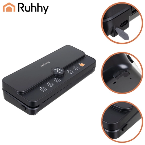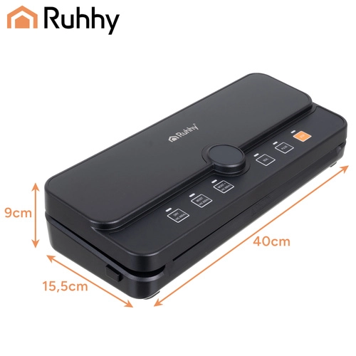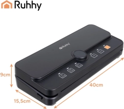 La práctica y fiable envasadora al vacío de bolsas RUHHY es ideal para conservar alimentos en casa y para preparar sous‑vide. Gracias al fuerte vacío de hasta -80 kPa y a la bomba de 9 l/min, extrae el aire en segundos y crea un sellado firme y uniforme. El depósito para rollo integrado y el cortador deslizante te permiten fabricar bolsas de cualquier longitud sin tijeras, ahorrando tiempo y espacio.