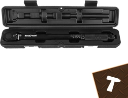 La construcción robusta de acero resistente, la empuñadura ergonómica antideslizante y el bloqueo del par para evitar cambios no deseados del ajuste aumentan la seguridad y la comodidad. El práctico estuche reforzado protege la herramienta durante el almacenamiento y el transporte.