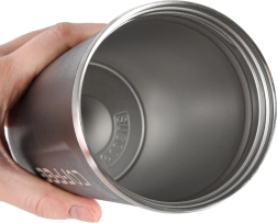La construcción en acero inoxidable 304 con doble pared ayuda a mantener la temperatura de la bebida por más tiempo y aumenta la durabilidad de la taza en el uso diario.