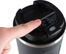 Práctica taza térmica con tapa bien pensada y pantalla LED táctil para medir la temperatura de la bebida. La gota roja avisa cuando la bebida está demasiado caliente, mientras que la verde señala la temperatura ideal para beber. El resistente acero inoxidable 304 y el sellado de calidad ayudan a mantener la temperatura por más tiempo y evitan filtraciones.