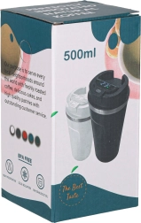 Elegante taza térmica de viaje con capacidad de 500 ml que mantiene las bebidas calientes y frías. Gracias al indicador de temperatura LED integrado, siempre sabrás cuándo es momento de beber. Cuerpo resistente de acero inoxidable 304, doble pared para una mejor aislación y tapa roscada con boquilla que garantizan un uso cómodo y seguro en tus desplazamientos.