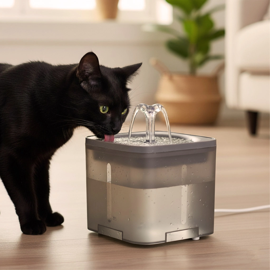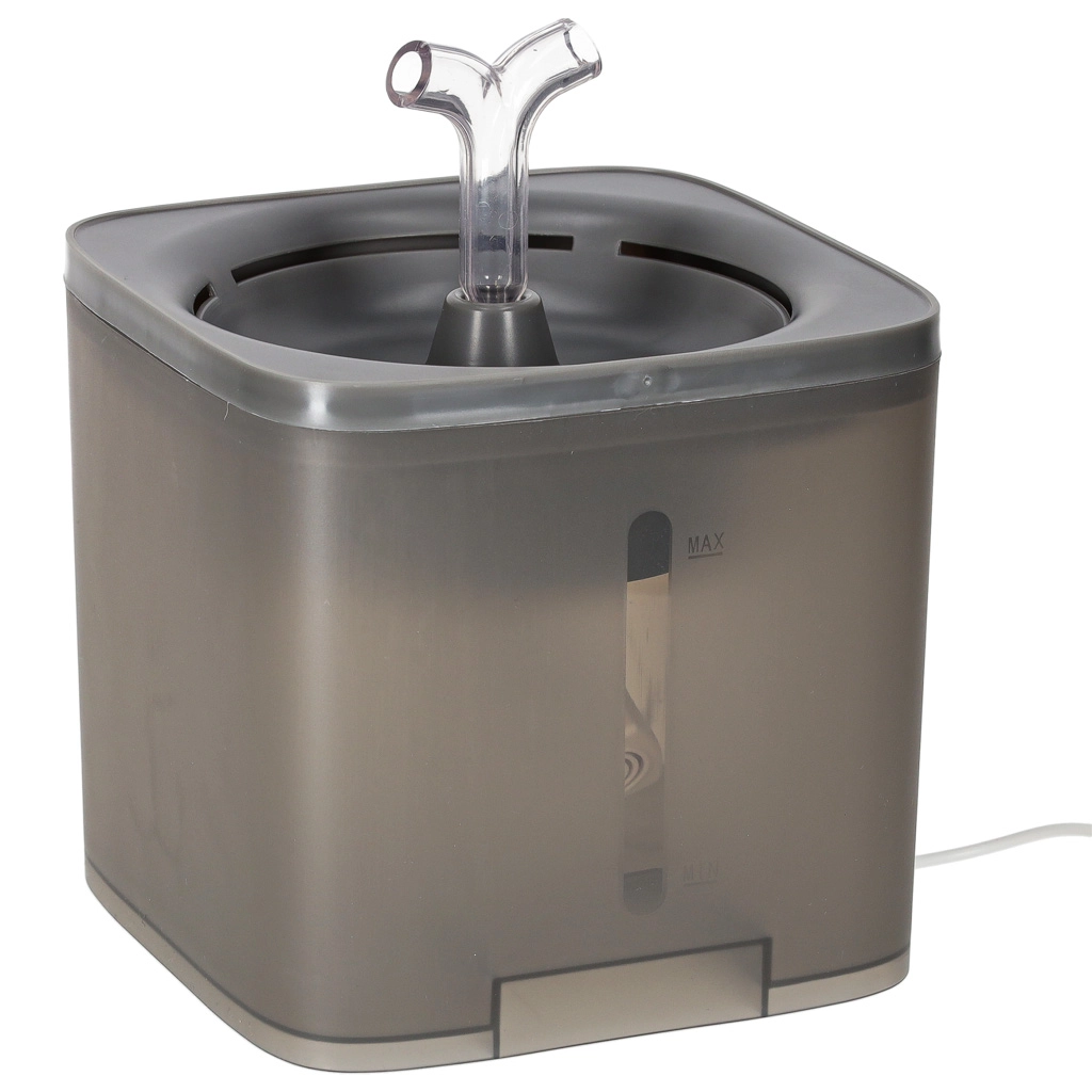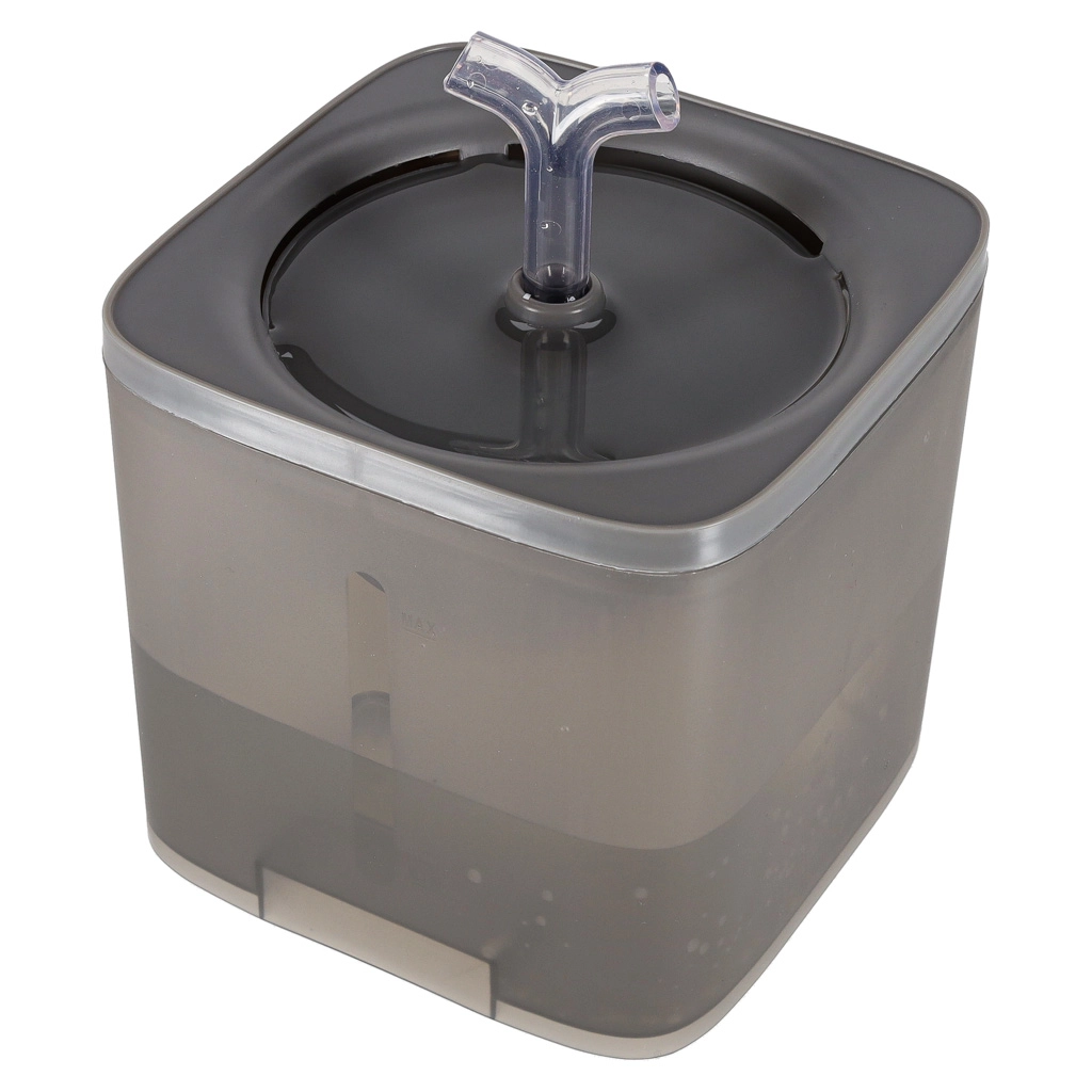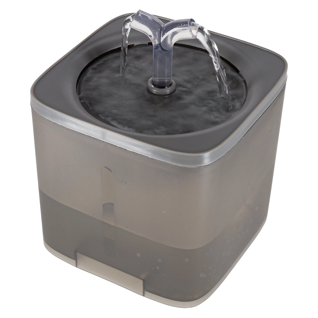 Ofrezca a su mascota agua siempre fresca gracias a esta compacta fuente de 2 l. Funcionamiento silencioso, bomba USB y filtro de carbón activo reemplazable garantizan la limpieza y circulación del agua, mientras que la práctica escala facilita el control del nivel.