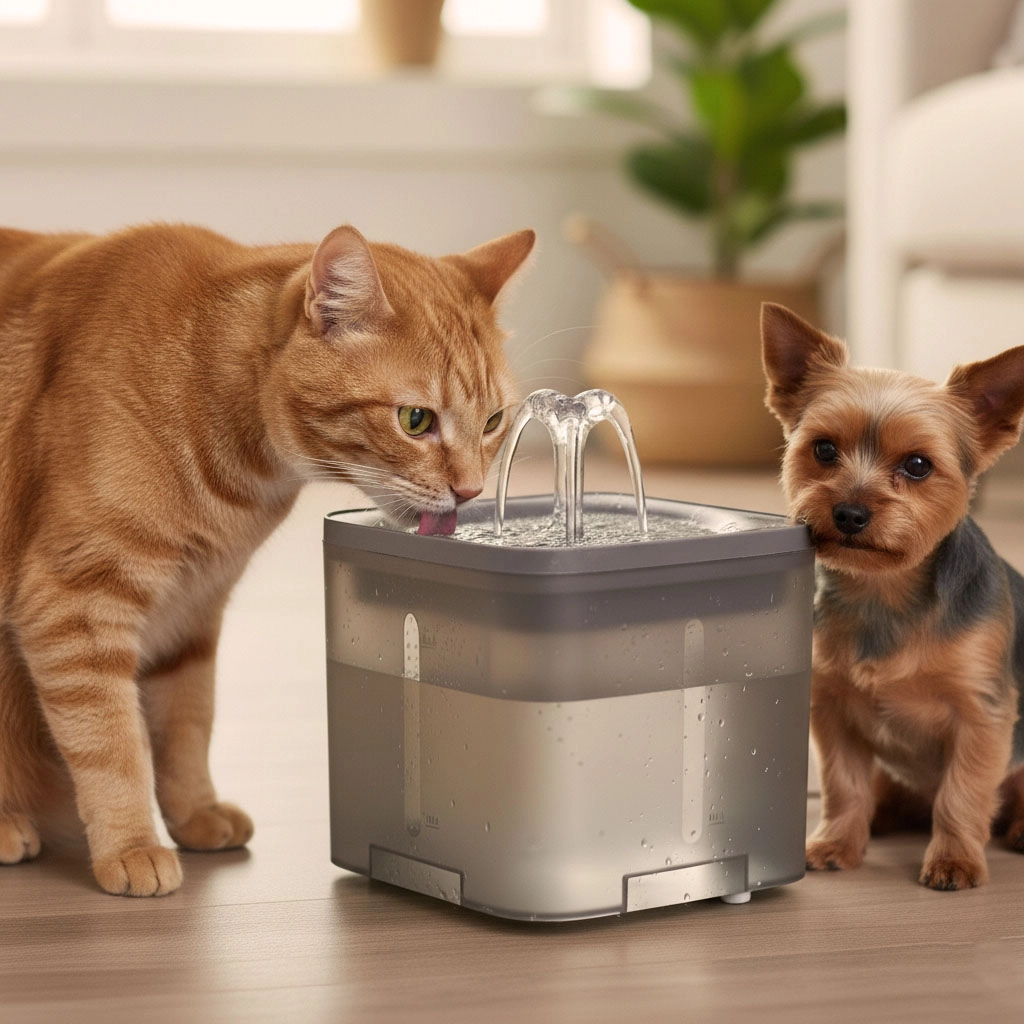 La fuente automática para perros y gatos favorece una hidratación regular. Gracias a la circulación del agua y a la filtración activa, el agua se mantiene siempre fresca y con buen sabor. El funcionamiento silencioso de alrededor de 40 dB no molesta en el hogar ni a los animales sensibles.