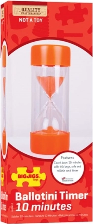 Mejora la percepción del tiempo con el reloj de arena grande de Bigjigs Toys, que mide un intervalo de 10 minutos. Es muy resistente, con una carcasa exterior de plástico protector robusto y un recipiente interior de vidrio para la arena.