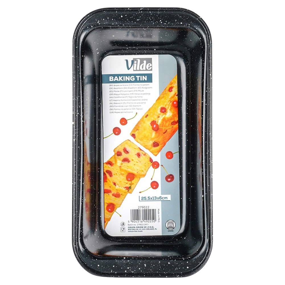 Práctico molde de granito para hornear pan, bizcochos tipo plum cake y masas de galleta o patés. Gracias al recubrimiento antiadherente de granito, la distribución uniforme del calor y la resistencia hasta 230 °C, lograrás resultados perfectos incluso con un mínimo de grasa. Fácil mantenimiento y uso universal en hornos de gas y eléctricos.