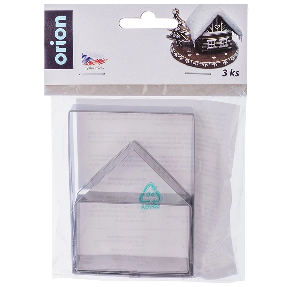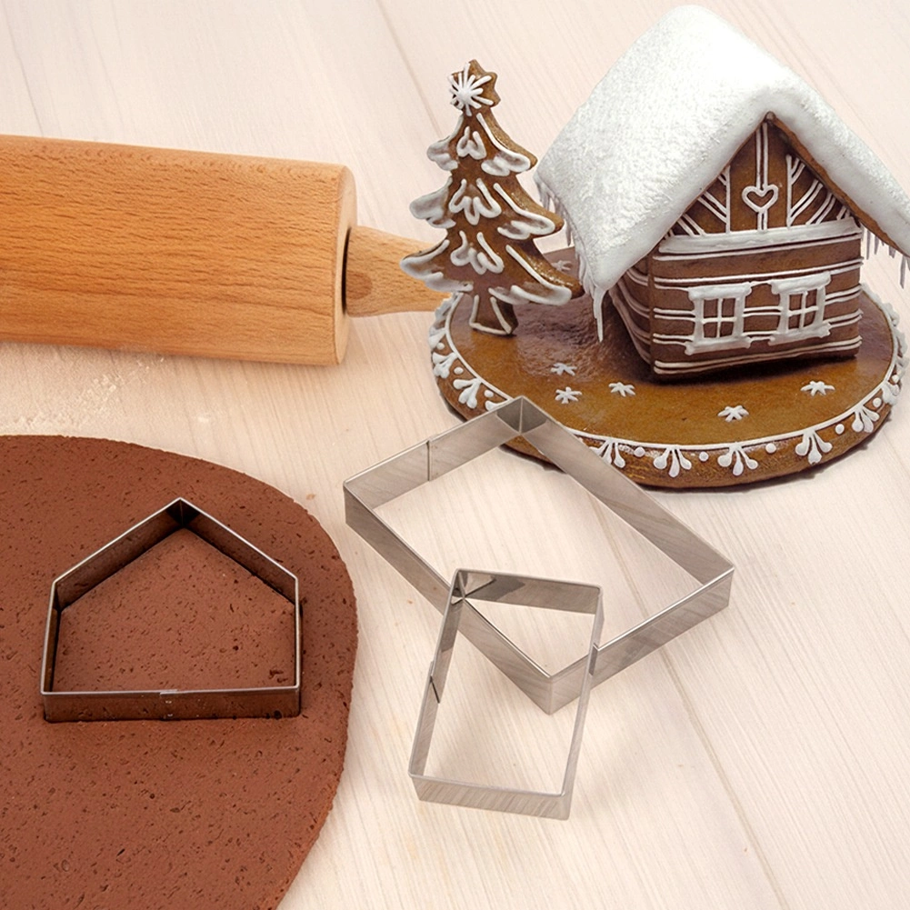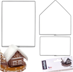 Con este práctico juego de cortadores, harás una preciosa casa de jengibre tridimensional lista para hornear, montar y decorar con glaseado o royal icing. Los cortadores están hechos de acero inoxidable de calidad, que garantiza larga durabilidad, fácil mantenimiento y cortes limpios en la masa.