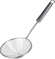 La amplia cabeza de alambre permite un escurrido rapidísimo de agua o aceite y facilita recoger ñoquis, pasta o patatas fritas.