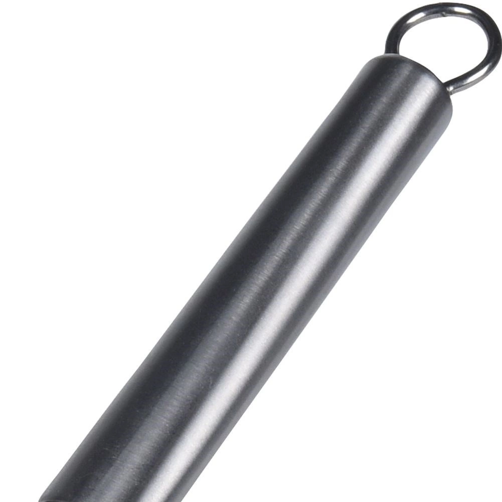 El mango largo proporciona un alcance seguro sobre el vapor y el aceite caliente; el ojal del extremo permite colgar en la barra y ahorrar espacio de almacenamiento. La construcción totalmente en acero inoxidable es resistente a la corrosión, higiénica y apta para lavavajillas.