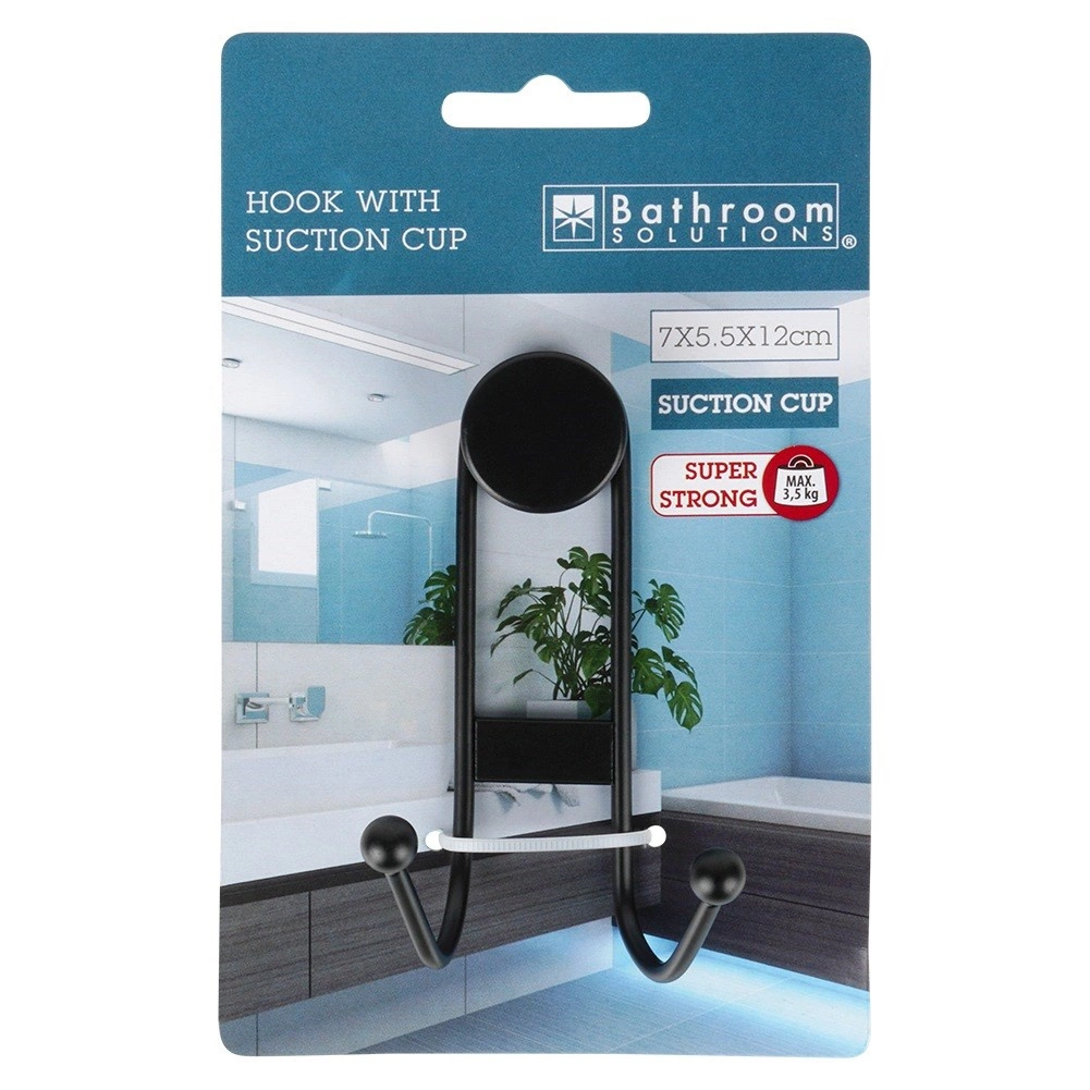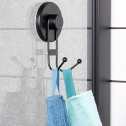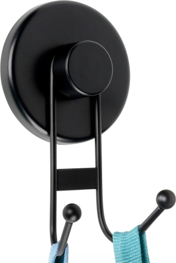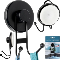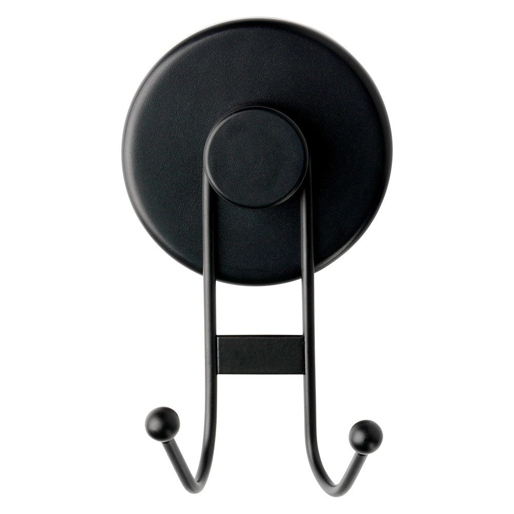 Disfruta del orden sin taladrar. El gancho doble con ventosa en color negro mate se fija firmemente a superficies lisas y soporta con fiabilidad las necesidades diarias en baño y cocina. La estructura metálica con recubrimiento en polvo garantiza resistencia y fácil limpieza con un aspecto moderno.