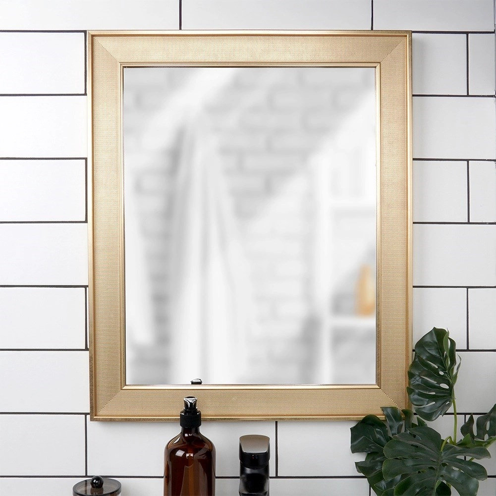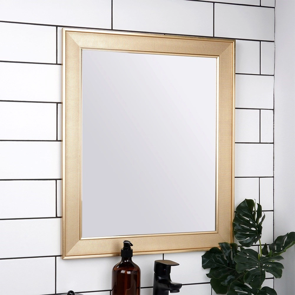 Este espejo con acabado dorado aporta de inmediato un toque de estilo al interior y lo hace parecer más luminoso y amplio. Gracias a sus dimensiones universales de 49,5 × 59,5 cm, es ideal para el salón, la entrada o el dormitorio, así como para espacios comerciales como oficinas, restaurantes o salones de belleza.