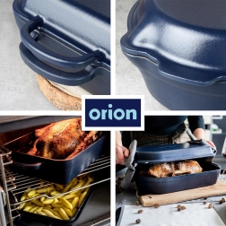 El asador de hierro fundido LITINA 2 en 1 es ideal para asar, guisar y gratinar carnes, verduras y platos de una sola fuente. La tapa funciona como recipiente independiente poco profundo, obteniendo así dos piezas de menaje prácticas en una. El robusto hierro fundido retiene muy bien el calor, por lo que la comida se mantiene caliente durante más tiempo al servir.