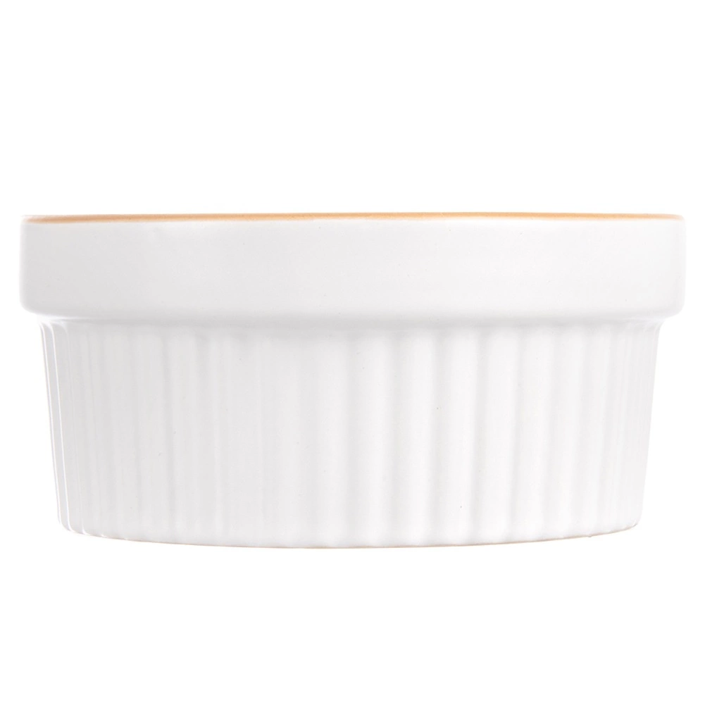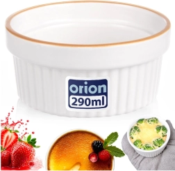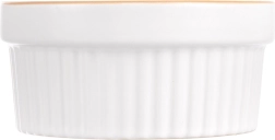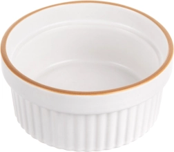 Práctico cuenco de cerámica para horno con capacidad de 290 ml y diámetro de 11,5 cm, ideal para crème brûlée, suflés, mini gratinados y postres. La cerámica resistente con esmalte blanco y borde marrón garantiza una cocción uniforme y un servicio elegante. Apto para horno (hasta 200 °C), microondas y lavavajillas.
