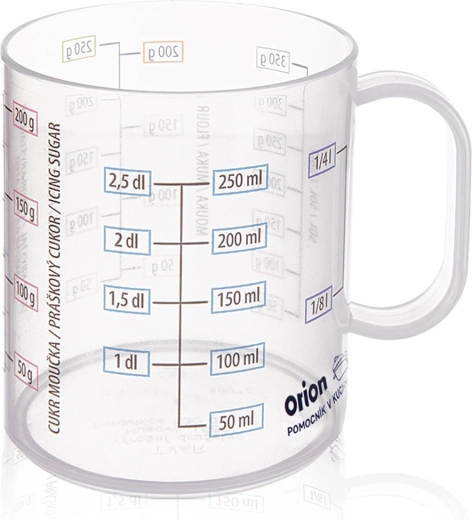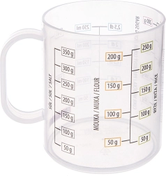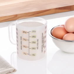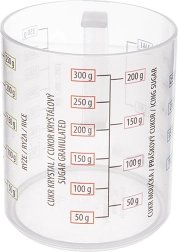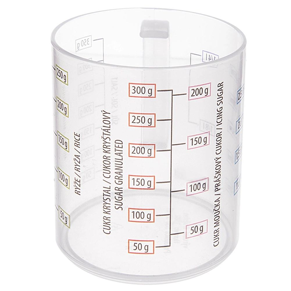 Facilita la cocina y la repostería con esta taza medidora compacta. Gracias a la escala quíntuple medirás de forma rápida y precisa el volumen y el peso de los ingredientes más comunes. La taza está hecha de plástico resistente y ligero, seguro para alimentos y con buena resistencia a daños mecánicos.