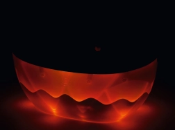 Al pulsar el botón, el exterior de la bañera se ilumina en distintos colores y suenan efectos de agua que crean el ambiente de un baño real.