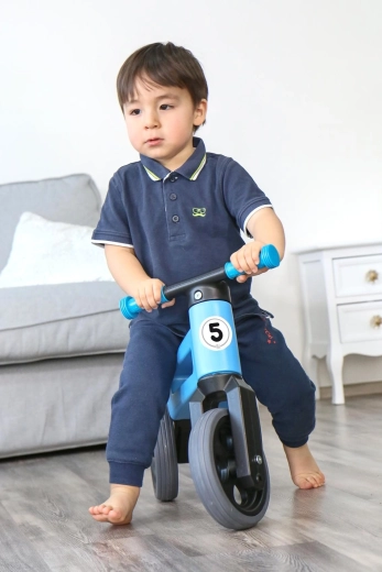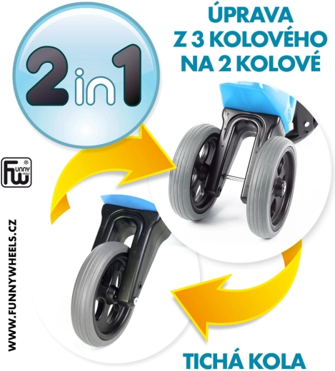 FUNNY WHEELS Rider Sport 2en1 es una opción excelente para las primeras salidas de tu peque. Comienza de forma estable con tres ruedas y más adelante pasa fácilmente a la versión de dos ruedas para entrenar el equilibrio. Gracias a las dos posiciones de altura del sillín, la bicicleta de equilibrio acompaña al niño durante más tiempo y apoya su desarrollo natural de la motricidad y la coordinación.