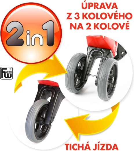 La original bicicleta de equilibrio checa FUNNY WHEELS Rider Sport está diseñada para facilitar a los niños sus primeros pasos hacia el ciclismo. Gracias al sistema 2 en 1, en pocos minutos la conviertes de triciclo a bicicleta de dos ruedas y, con dos posiciones de altura del sillín (diferencia de 3 cm), acompaña al niño en distintas etapas de crecimiento.