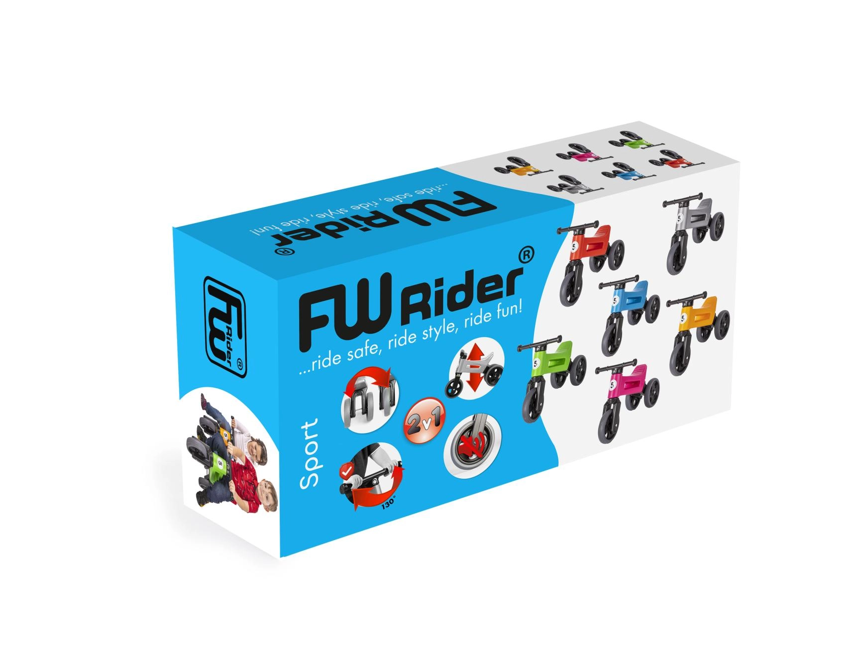 Detalles bien pensados como el rango de giro limitado para evitar el sobreviraje del manillar, las empuñaduras ensanchadas para proteger las manos y el plástico resistente y no tóxico con juntas suavizadas hacen del Rider Sport la elección ideal para los primeros pasos en “bici”. La bicicleta sin pedales es ligera (1,9 kg), fácil de transportar y sencilla de mantener: se limpia con agua tibia y jabón.