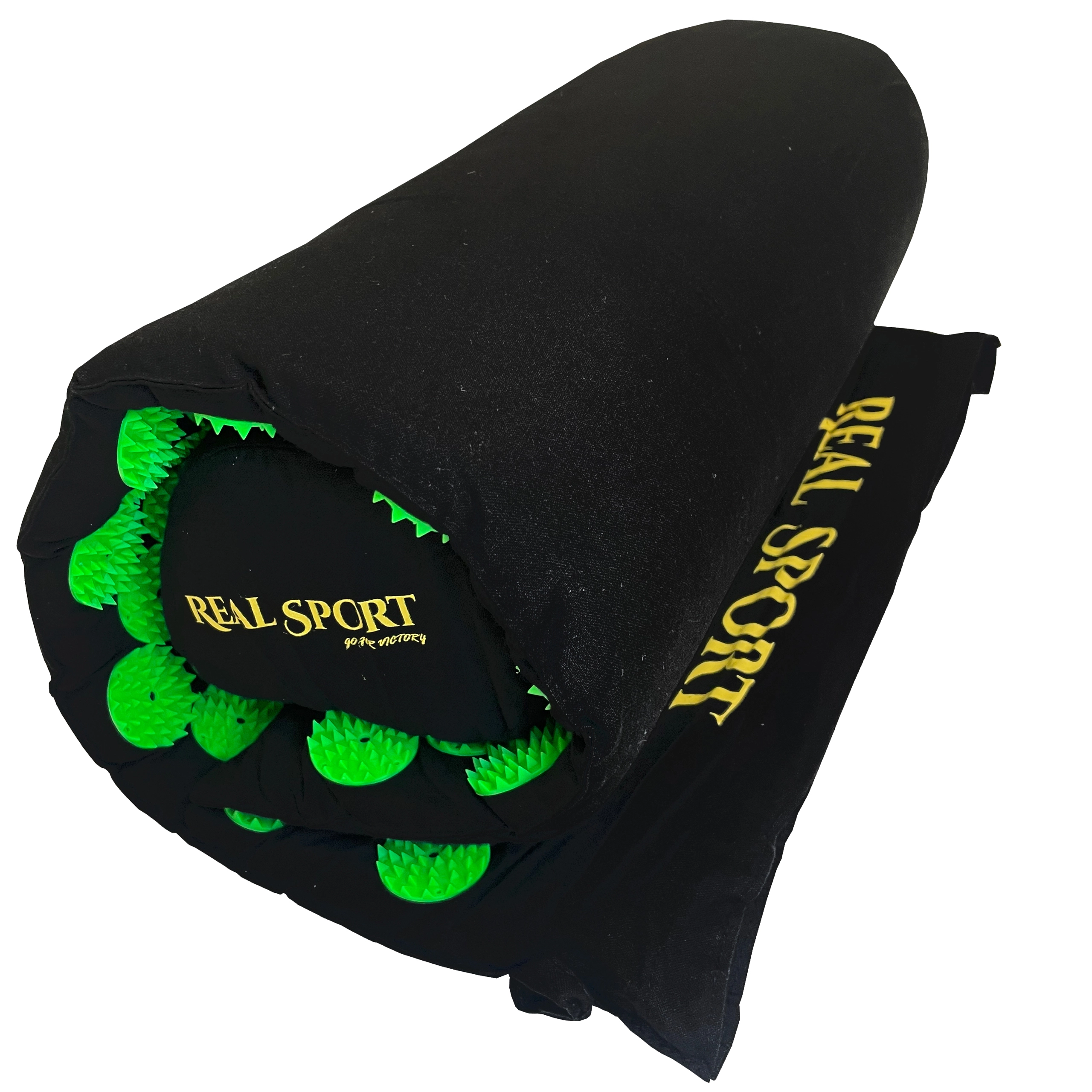 El cojín cilíndrico complementa la esterilla y se dirige a las zonas sensibles de la columna cervical, los hombros y la zona lumbar para un alivio integral.