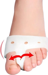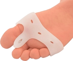 Práctico accesorio de silicona para mayor comodidad al caminar y en el uso diario del calzado. El separador amplía suavemente el espacio entre el dedo gordo y el segundo dedo, lo que ayuda a la correcta posición de los dedos y reduce la presión sobre la articulación del dedo gordo. La silicona suave y flexible se adapta a la forma del pie y ofrece alivio inmediato de la fricción y los puntos de presión.