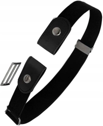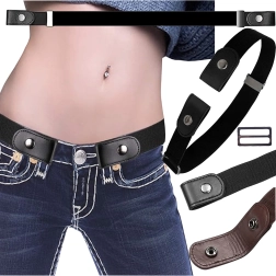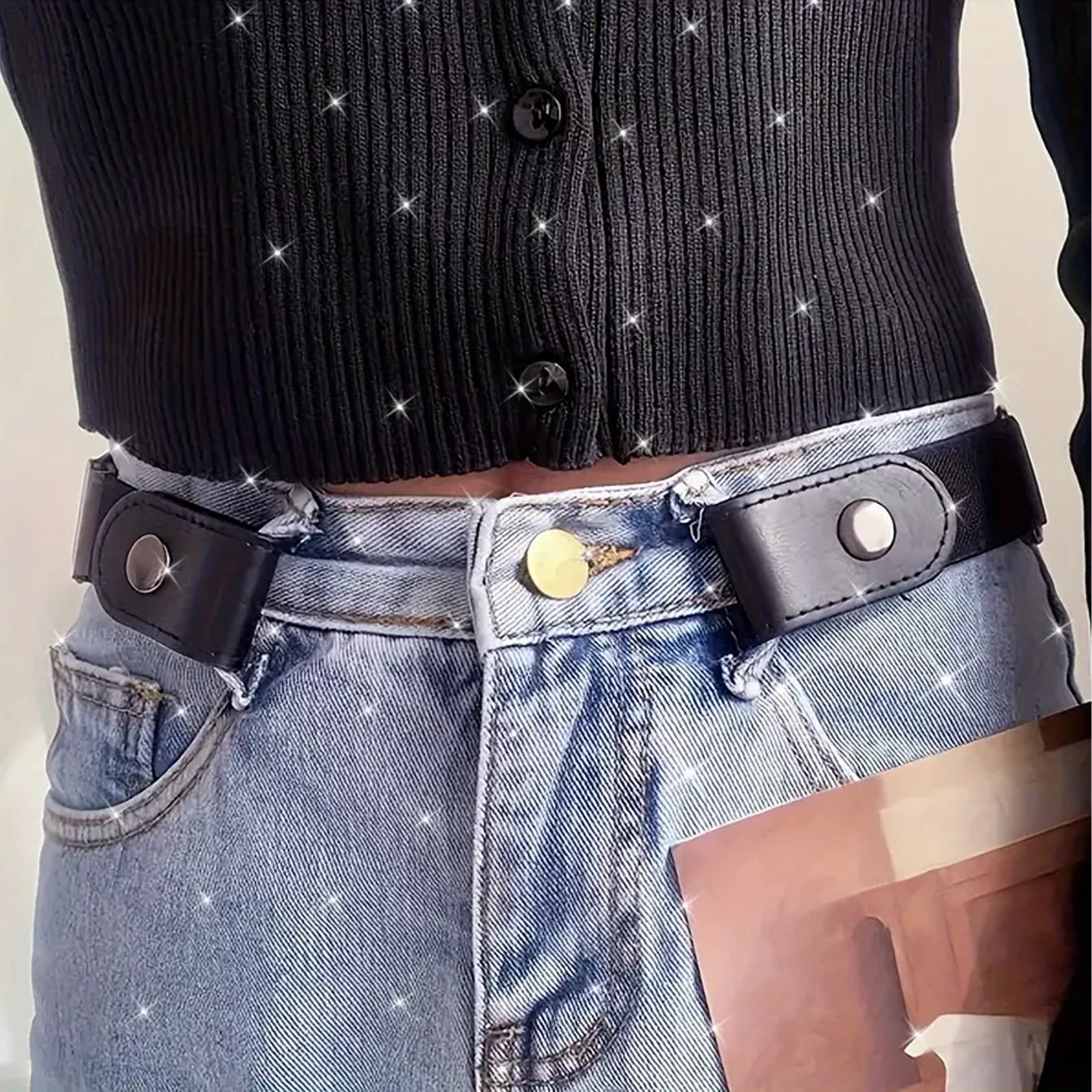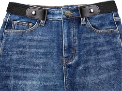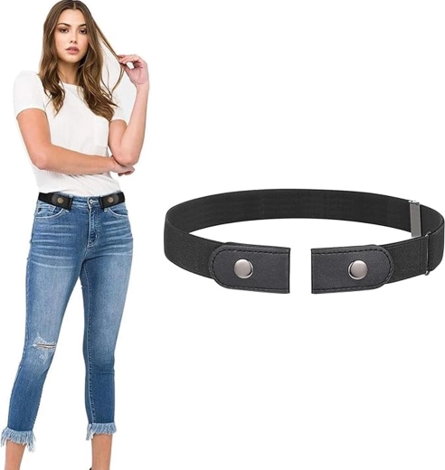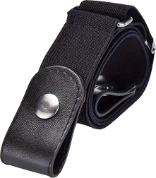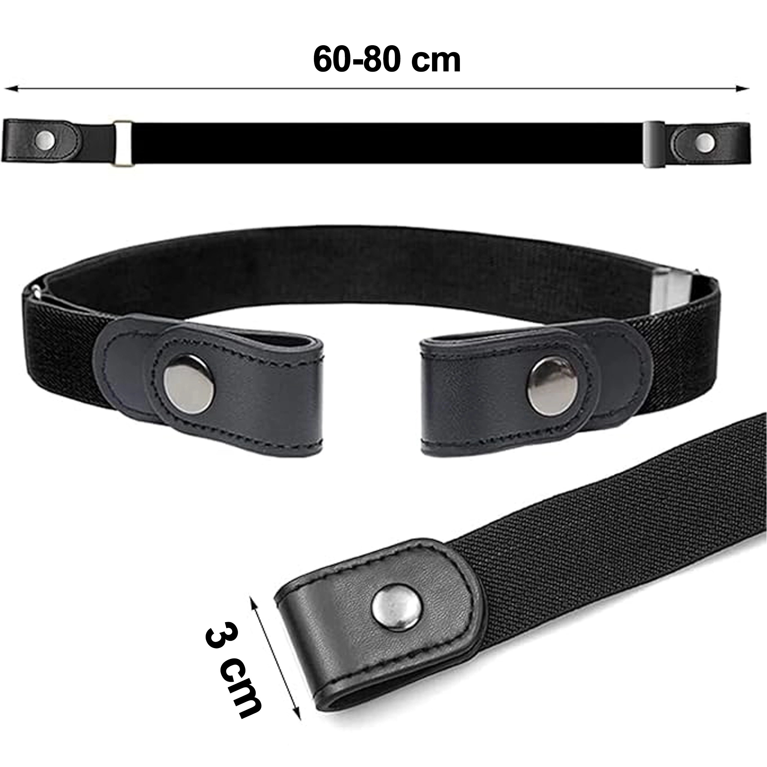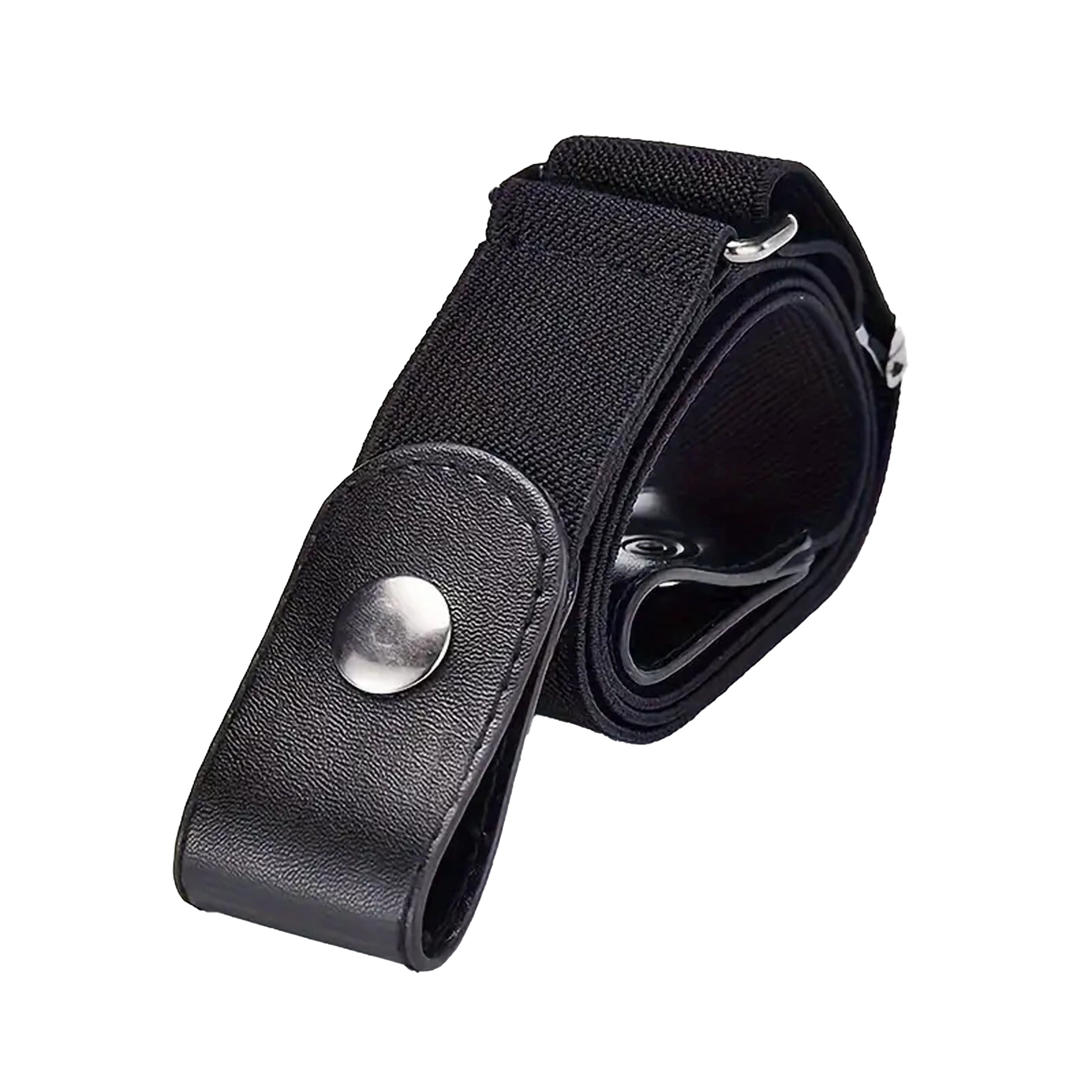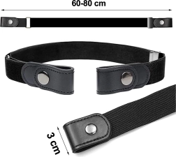 Este cinturón ajustable sin hebilla es ideal para vaqueros, pantalones y shorts. El material elástico ofrece un ajuste perfecto a la cintura y comodidad al sentarse o moverse, mientras que los broches en los extremos se enganchan de forma rápida y segura a las trabillas.