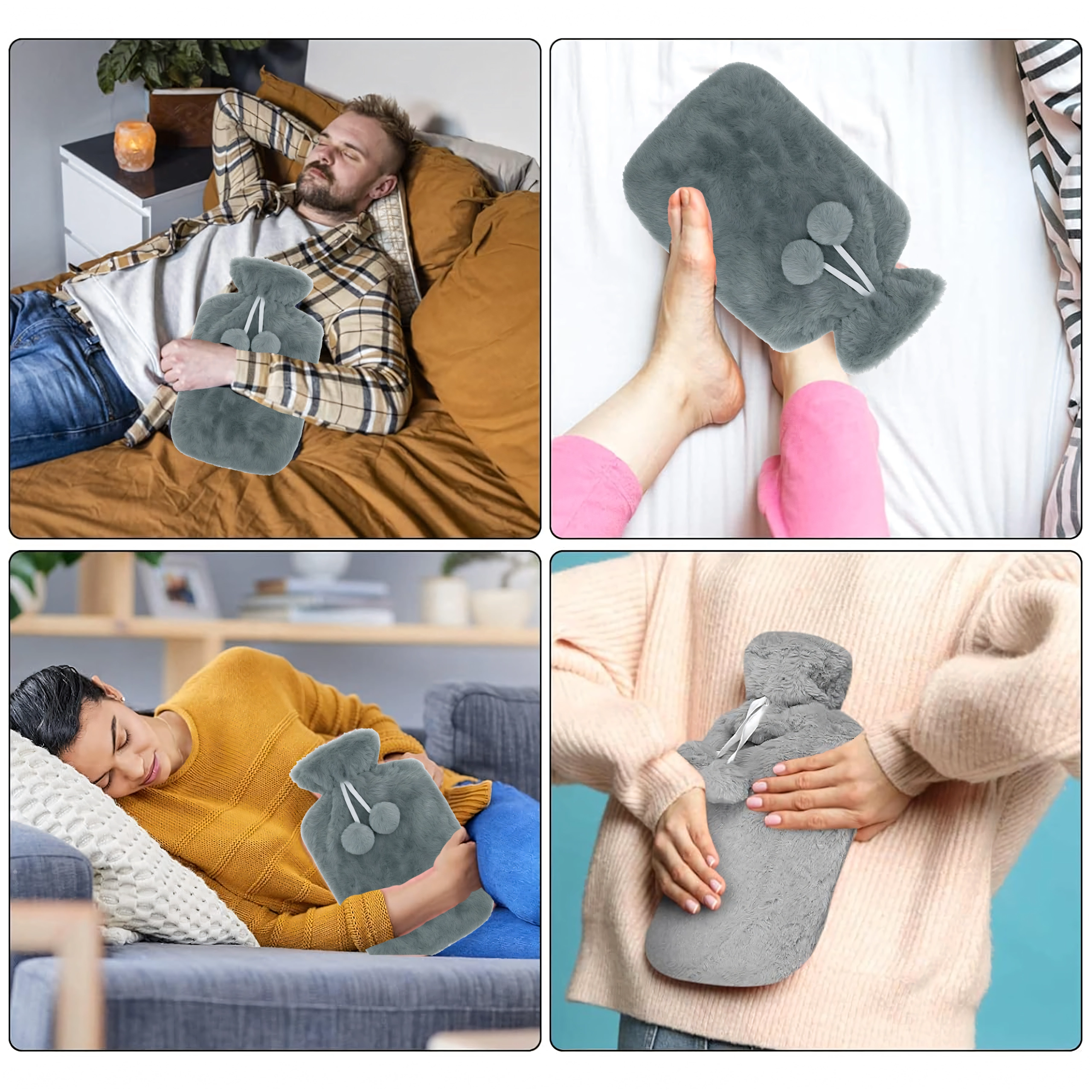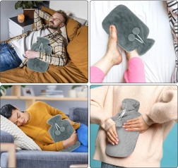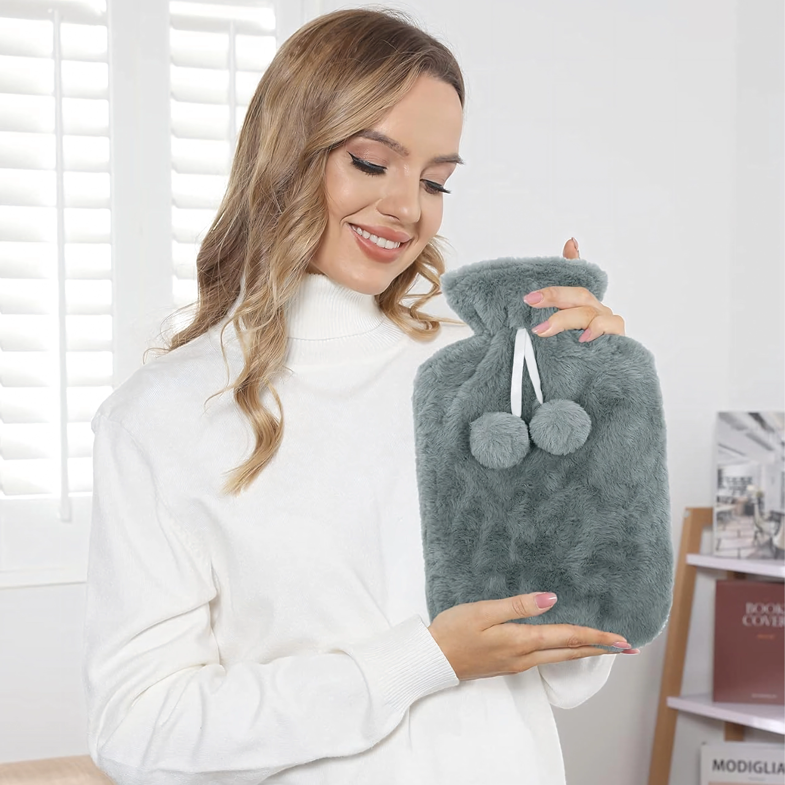 La práctica funda con pompones decorativos proporciona mejor aislamiento, limpieza y confort al contacto con el cuerpo. La botella de goma texturizada del interior distribuye el calor de manera uniforme y reduce el riesgo de sobrecalentamiento localizado. Es perfecta para relajarse en casa, para los dolores menstruales, tensiones musculares y para entrar en calor en tiempo frío.
